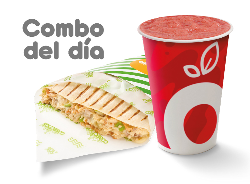 Batido mediano de la línea pasión o la línea alegría (A elección) + el sabor de Wrap que prefieras (A elección)
