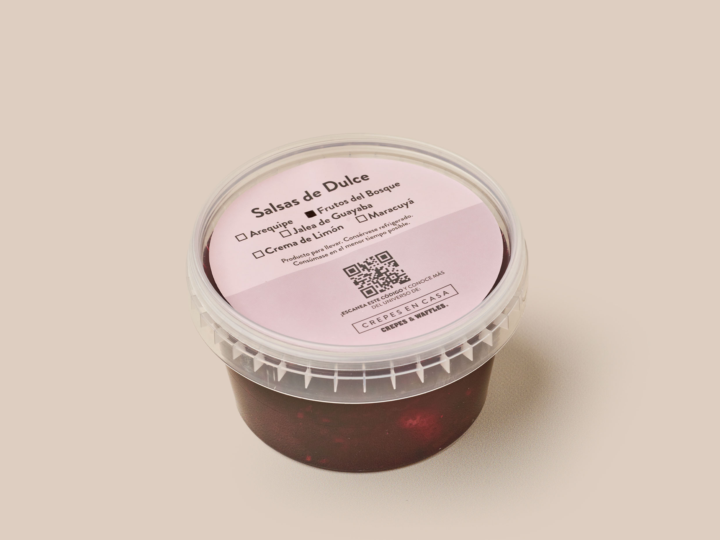 Waffle. Pídelo con una de nuestras salsas: arequipe, chocolate, melocotón, salsa inglesa, caramelo o jalea de guayaba.