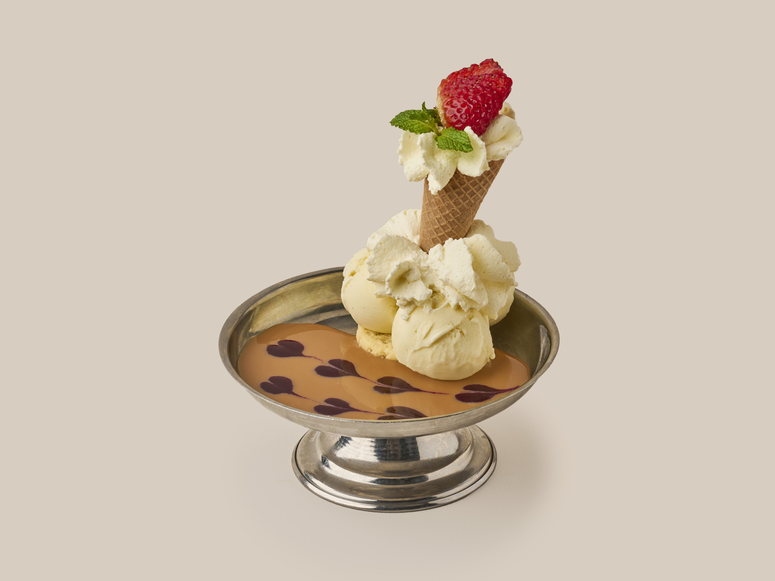 Con helado de Vainilla y crema chantilly.