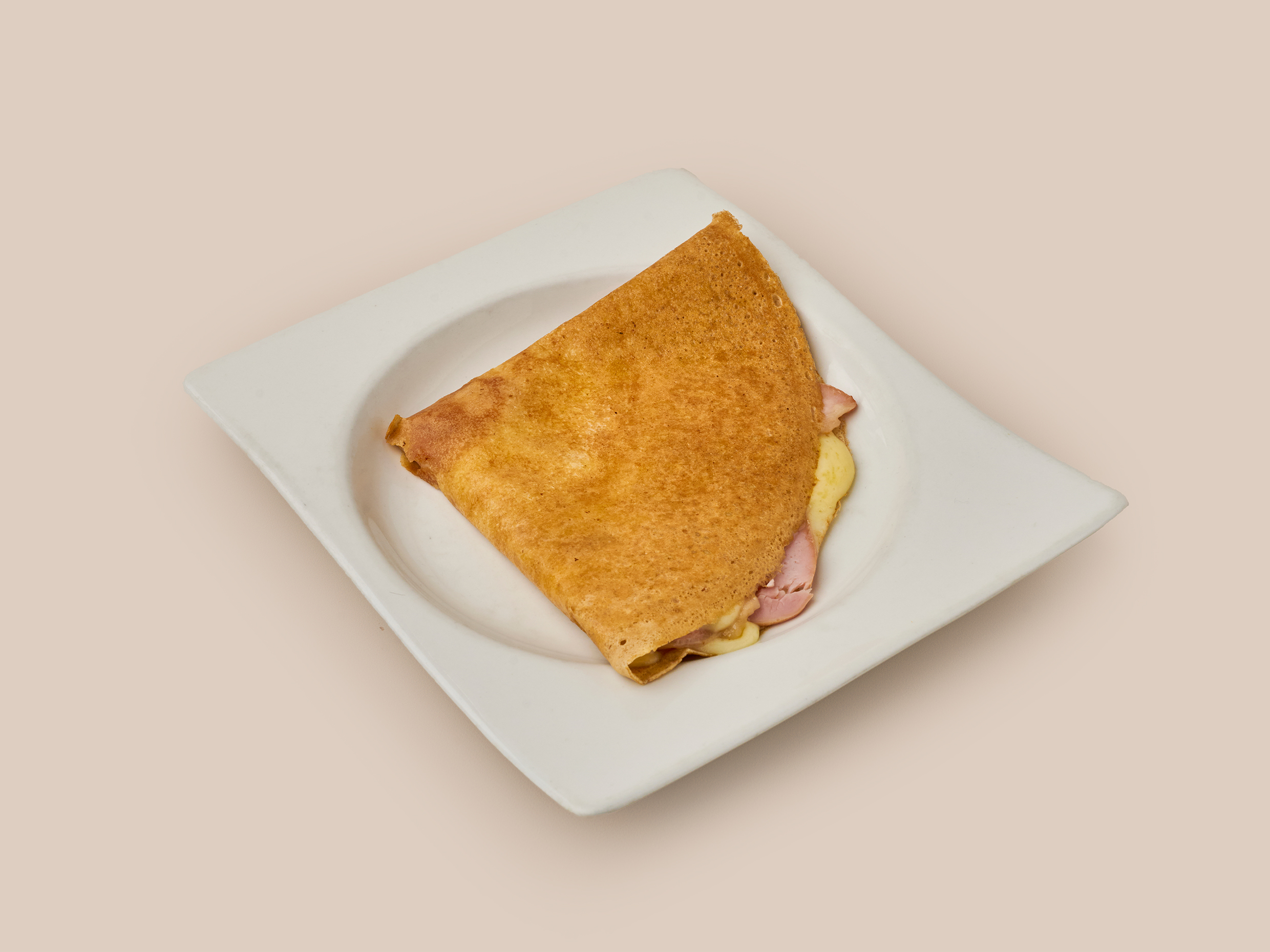 Crepe de jamón ahumado, queso holandés y huevo.