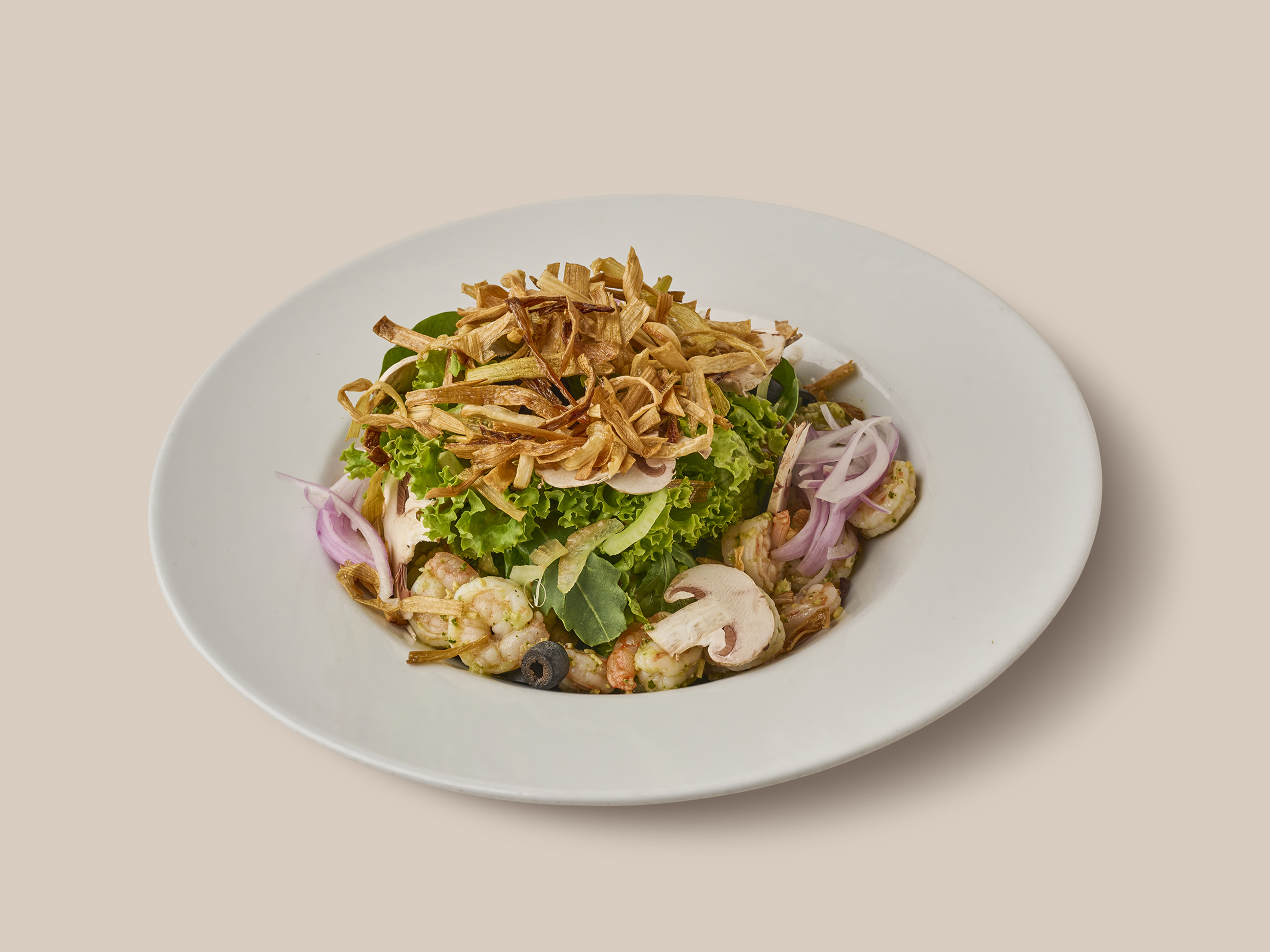Pulpo, camarones, calamares y langostinos sobre quinua negra, bañados en salsa de coco y toques de coco crujiente.
