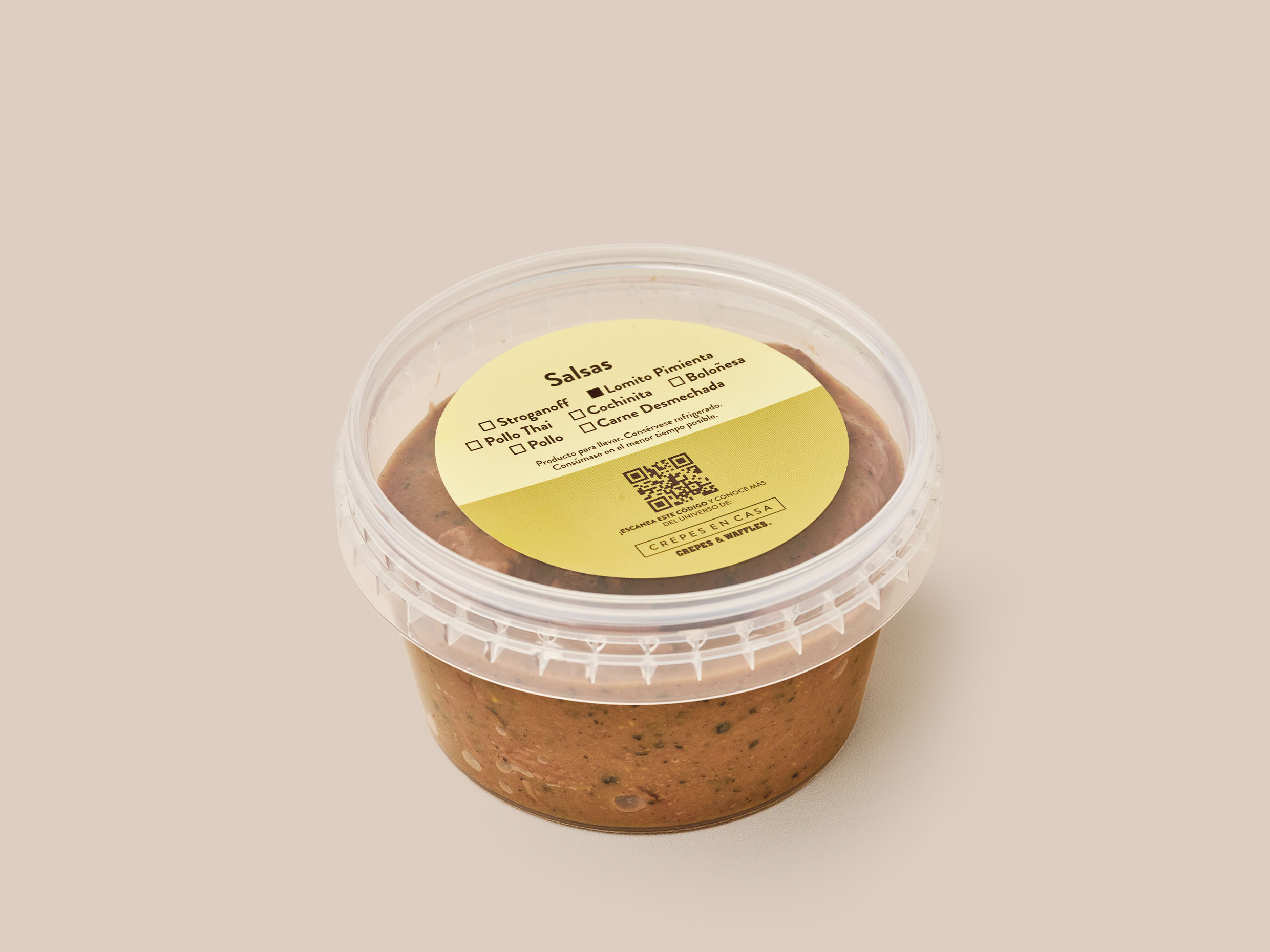 Crepe boloñesa, queso rallado, lechuga, salsa mexicana, crema agria y ají.
