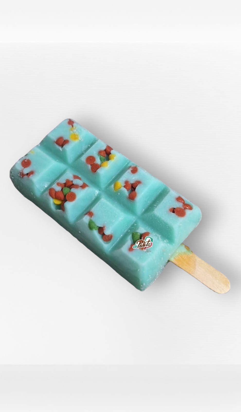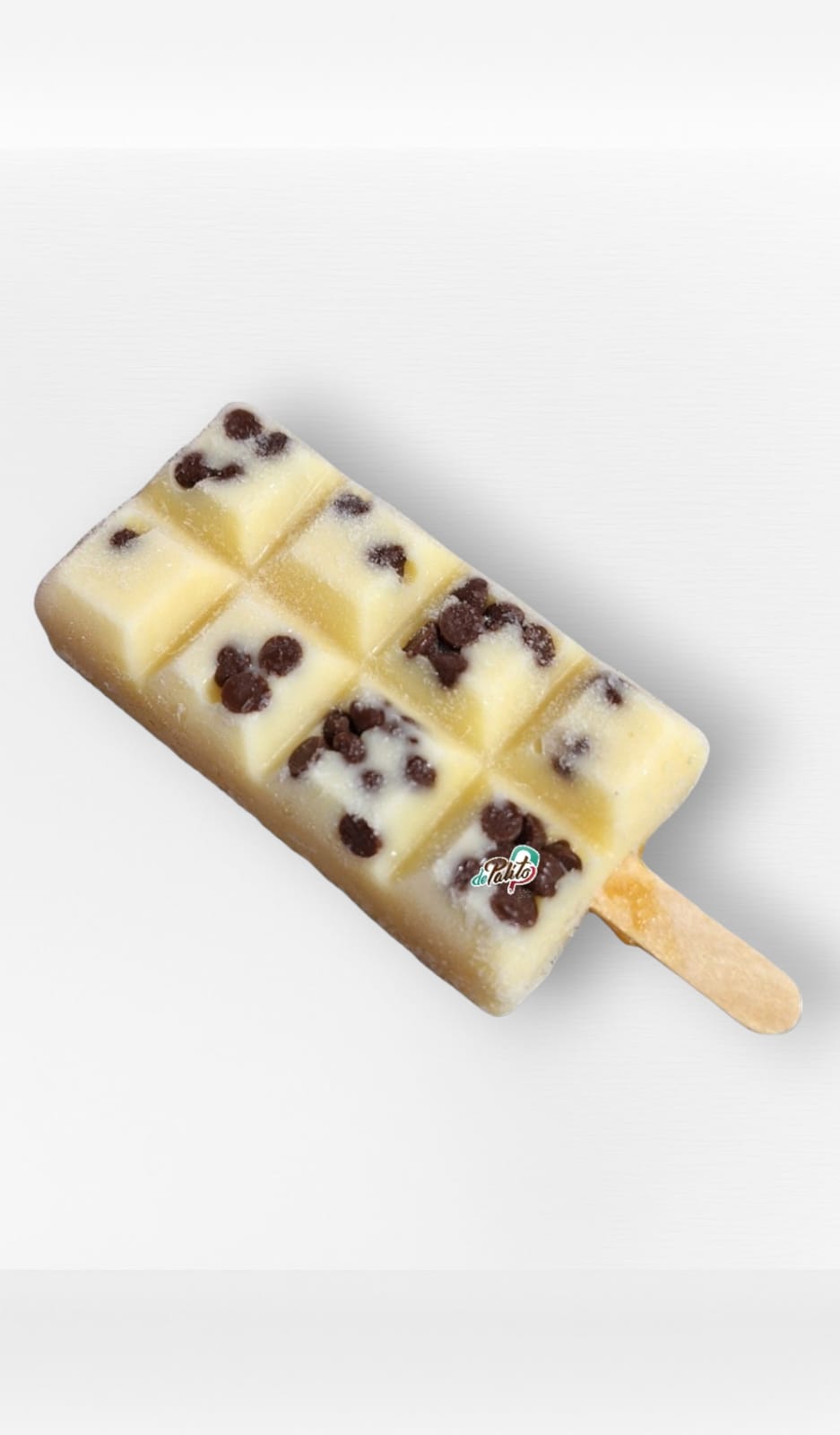 Paleta artesanal a base de leche y chips de chocolate.