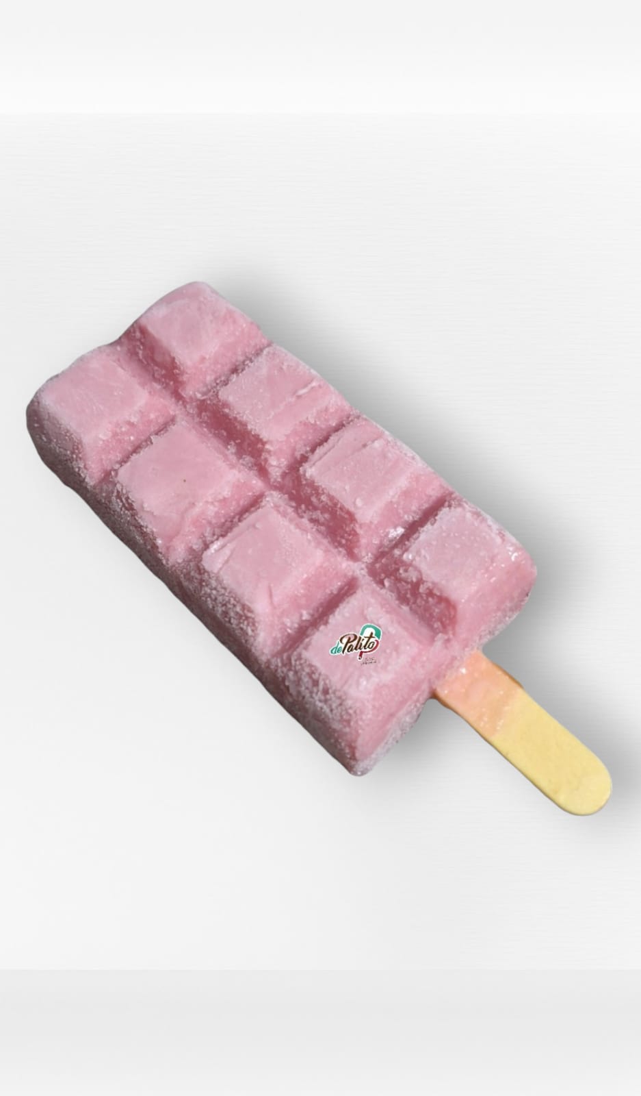 Paleta artesanal a base de leche y trozos de bocadillo.