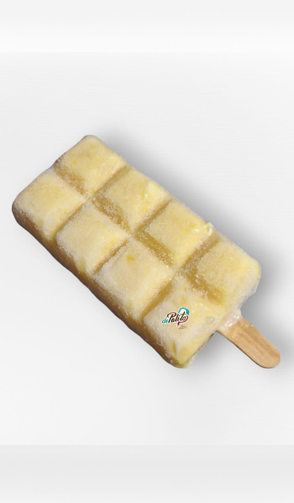 Paleta artesanal a base de leche y trozos de piña.