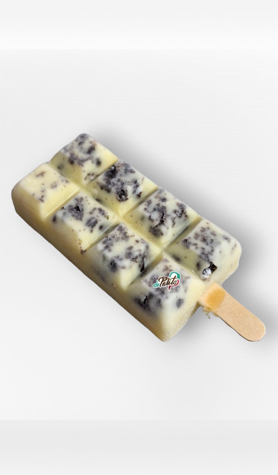 Paleta artesanal a base de leche y trozos de galleta oreo.