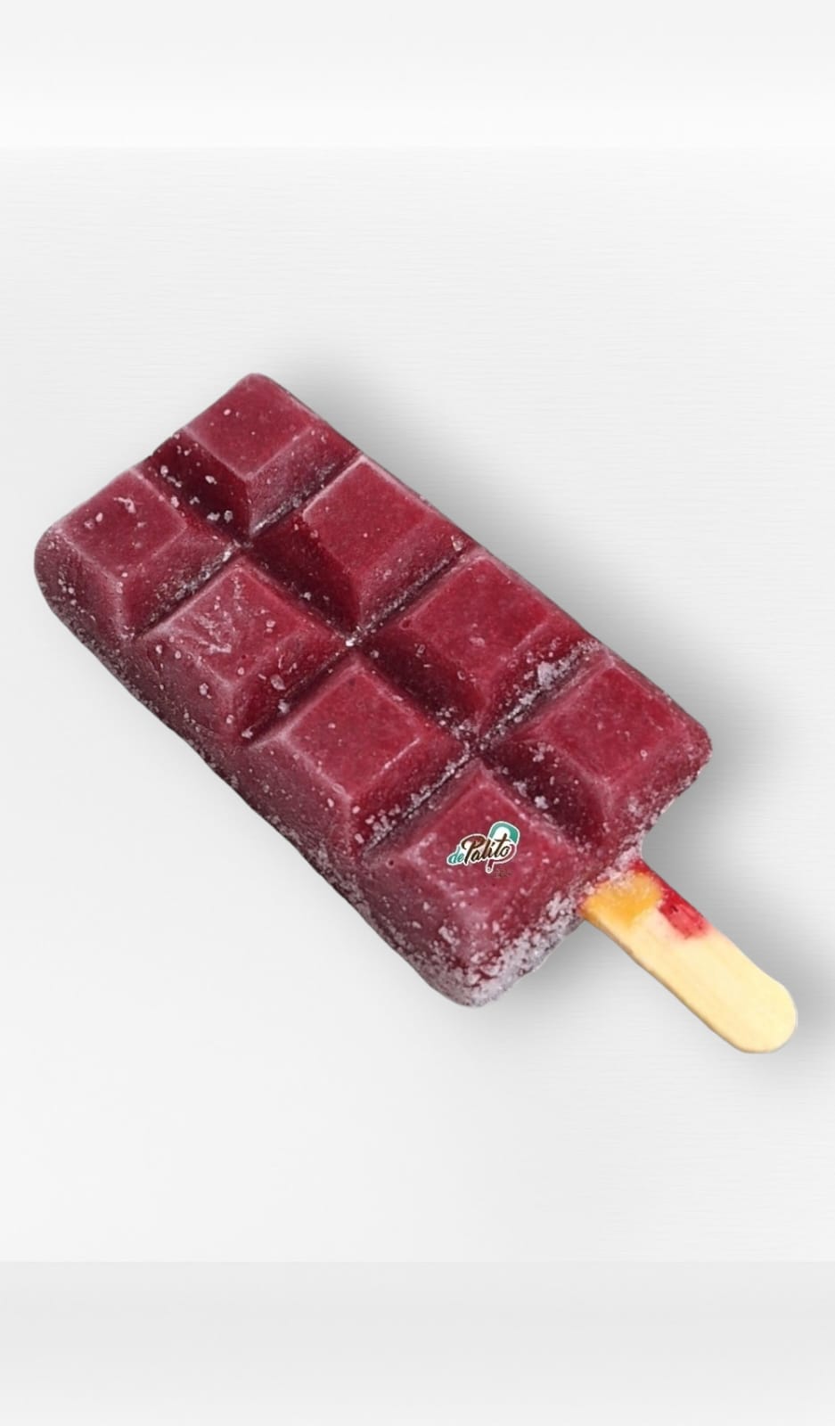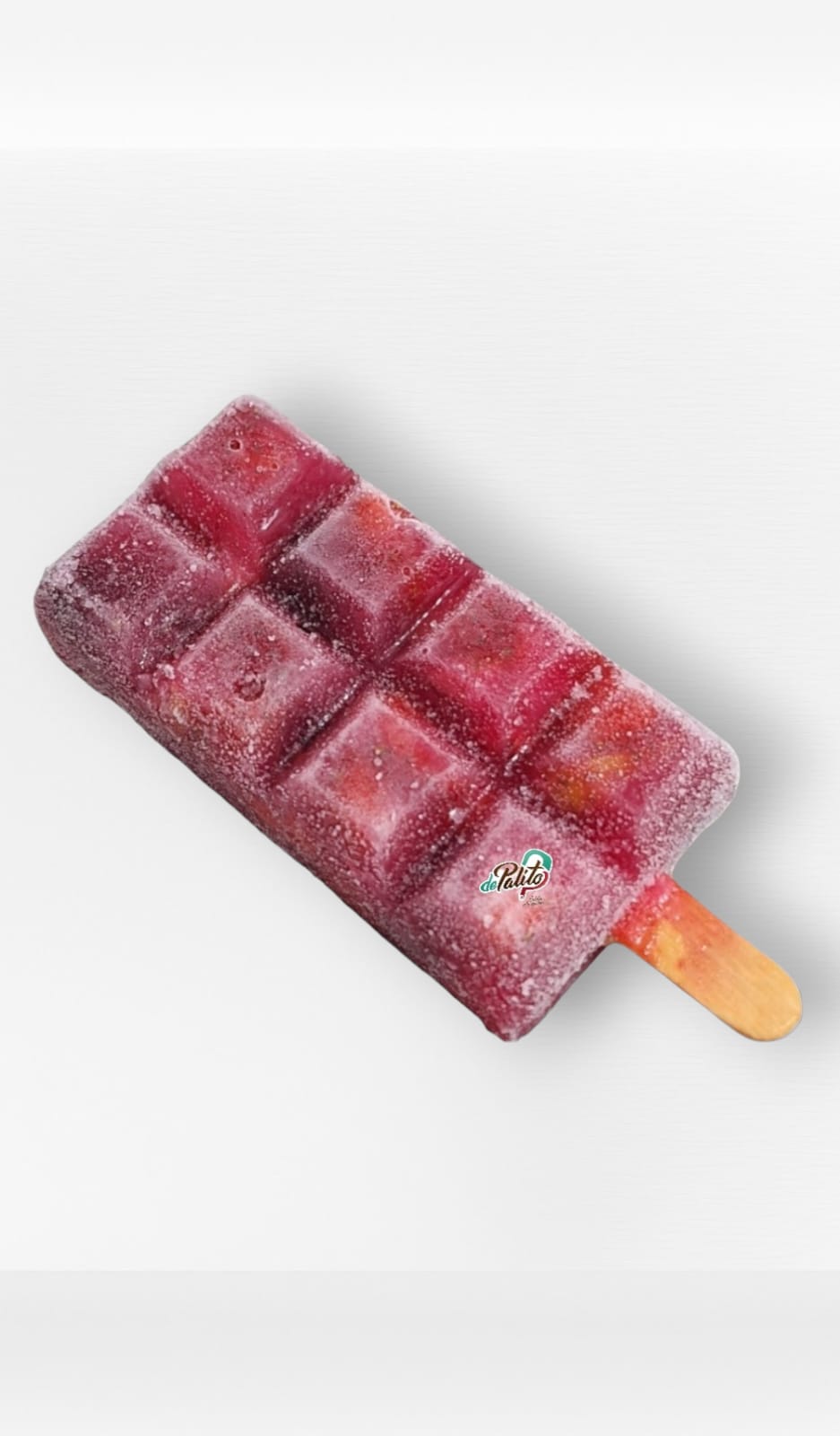 Paleta artesanal a base de agua sabor a frutos rojos y trozos de fruta.