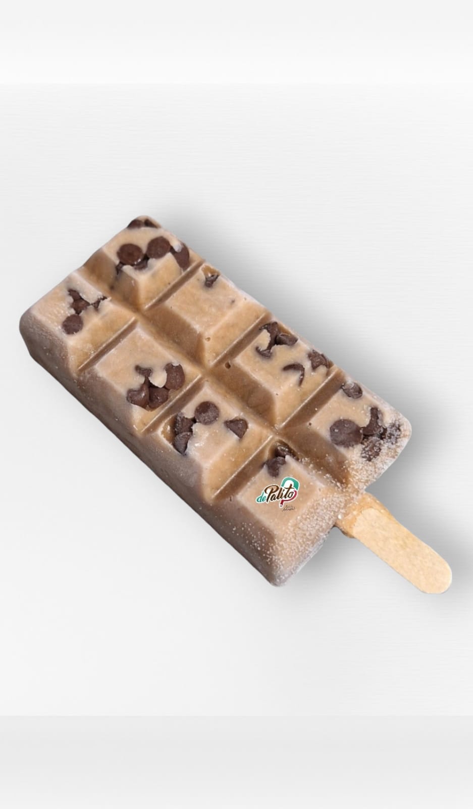 Paleta artesanal a base de leche con chips de chocolate.