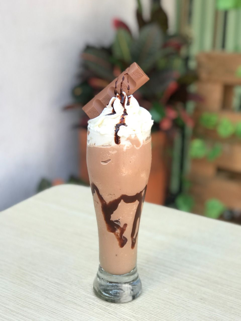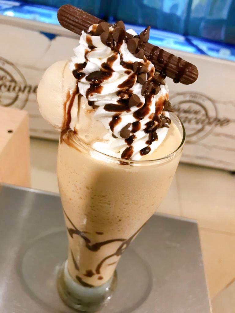 Nevado de café , crema chantilly, chips de chocolate y sirope de chocolate