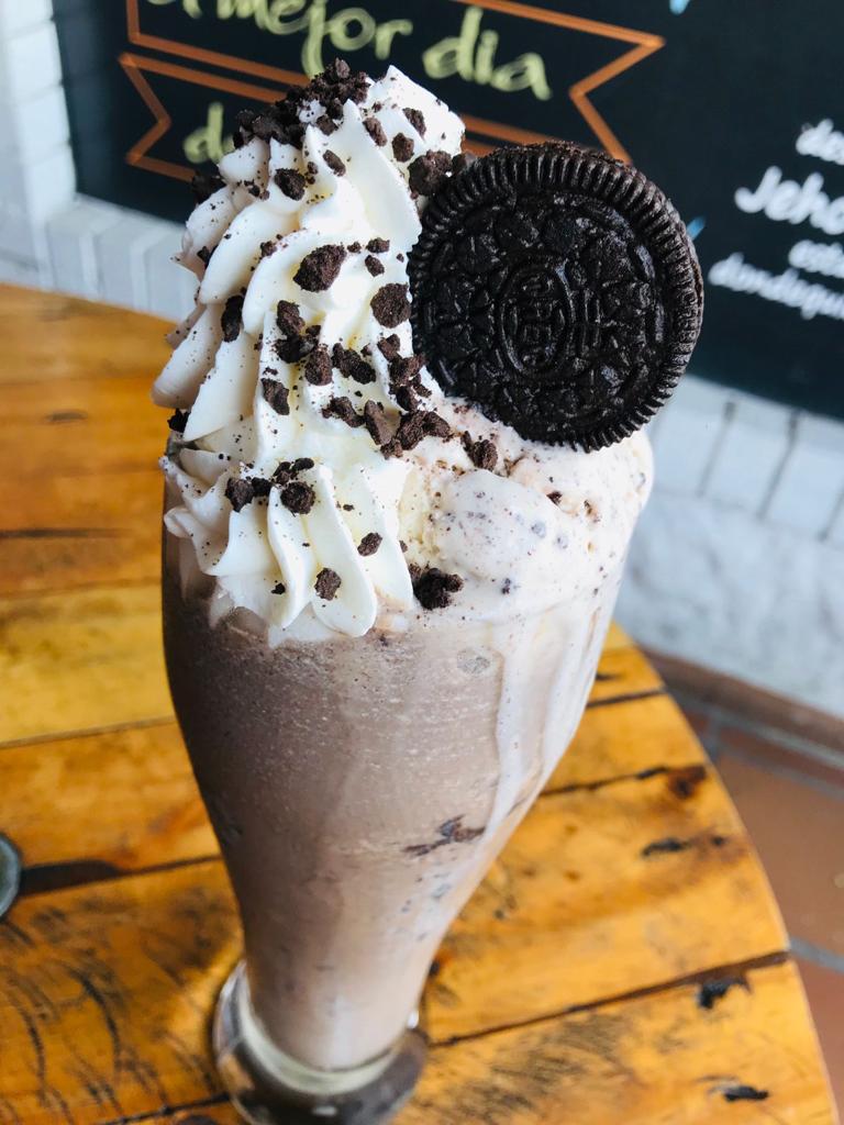 Nevado de Oreo, crema chantilly, galleta Oreo.