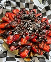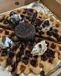 Tradicional Waffle con Fresa, Oreo, y chocolate Liquido