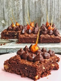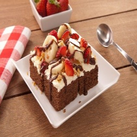 Clasico Brownie con Chantilly, Fresa, Banano y Decoración