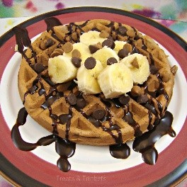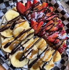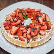 Tradicional Waffle con Fresa, Banano, y Chocolate Hersheys