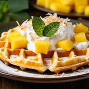 Tradicional Waffle con Banano, Fresa y Chantilly