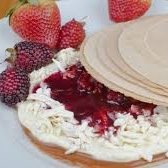 Oblea con Arequipe, Chantilly, Fresa, Mora y Queso.