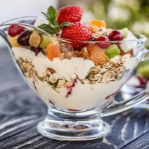 Clasico Parfait con fruta fresca, yogurt, maiz en hojuelas, chantilli, Vaso 16 ONZ.
