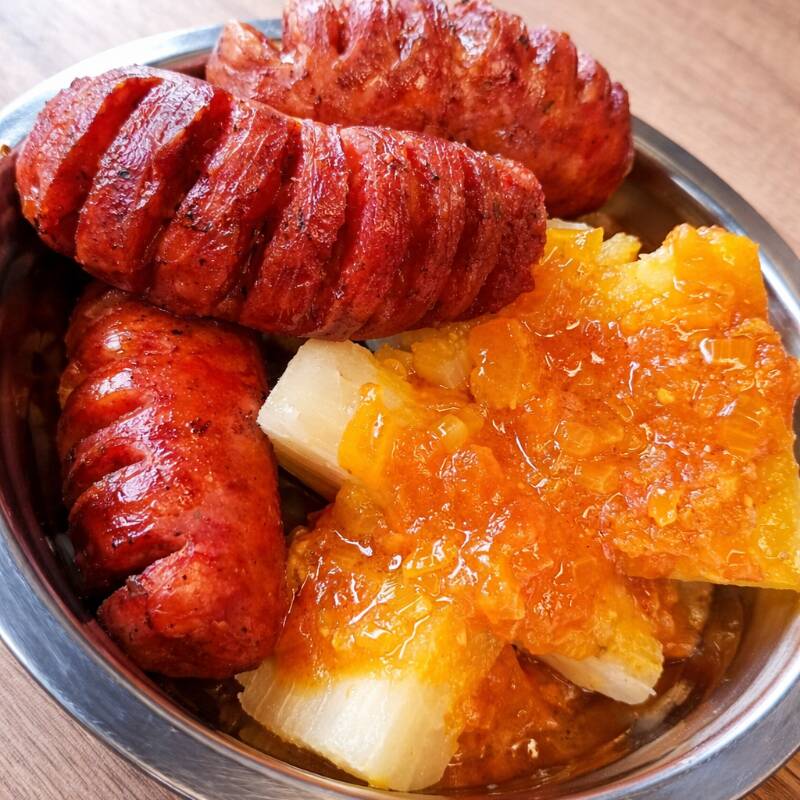 (4) Chorizos Artesanales mas yuquita con hogao.