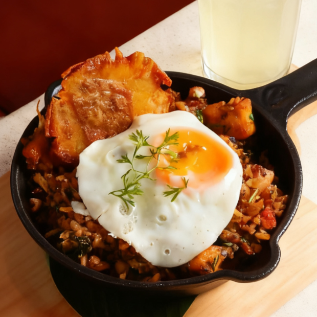 Esta ricura contiene (300 GR) base mezclada con arrocito, frijol, papa y chicharroncito, (2) huevos fritos, (3) alitas de pollo crispy, tajadas de maduritos y la infaltable porcion de aguacate.