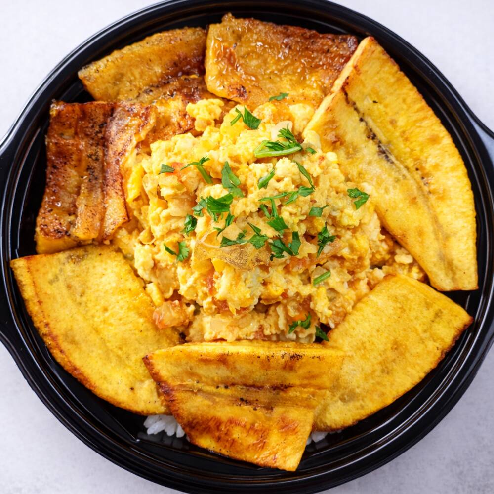 El Colombianito es puro sabor de casa 🇨🇴: arrocito con fideos al estilo tradicional, mezclado con trocitos de queso derretido, dos huevos pericos recién hechos y full maduritos en tajadas. ¡Un calentao chiquito, pero con toda la sabrosura paisa!