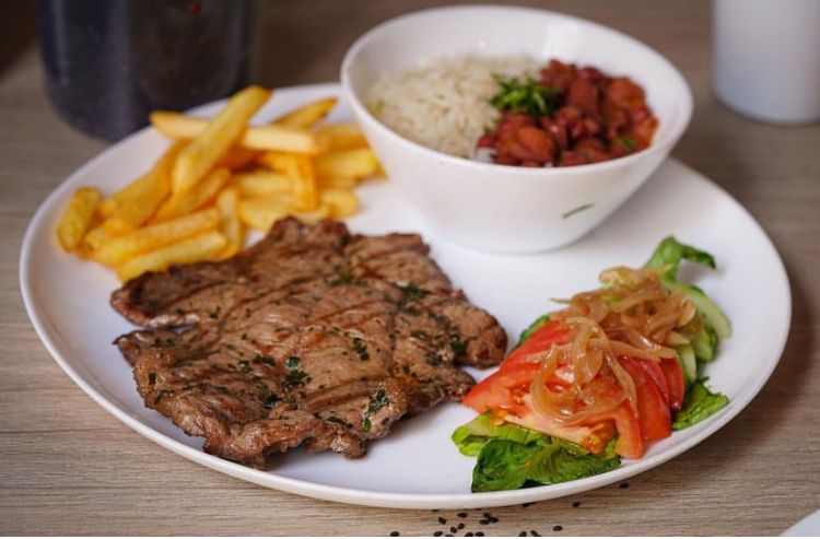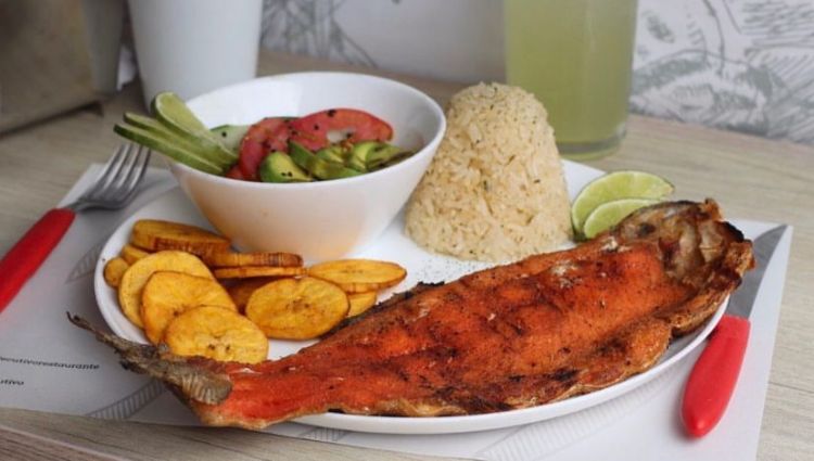 Res, pechuga, cerdo, acompañado de maduro, papa criolla, chorizo, aguacate con pico de gallo, 189gr de proteína