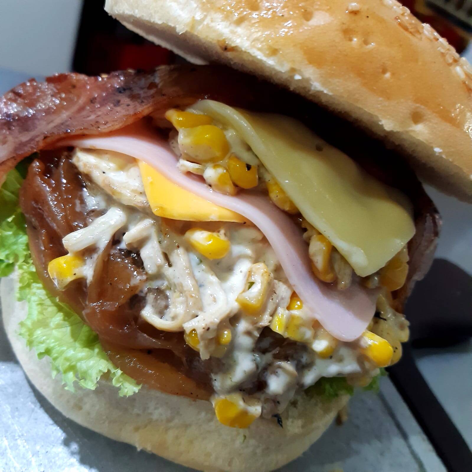 Carne, cebolla grillé, arepa, lechuga, tomate, jamón, queso, tocineta, maíz tierno desgranado,pollo mechado, aros de cebolla, papa a la francesa.