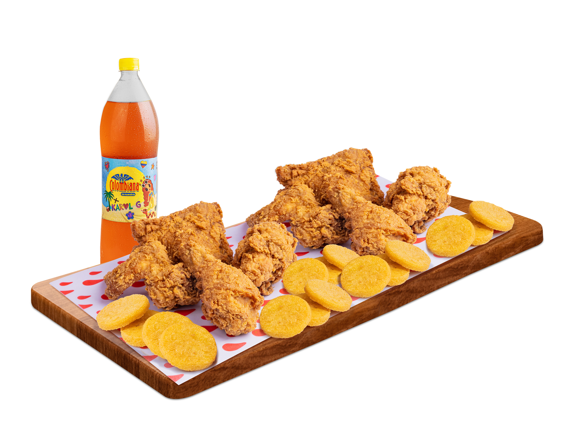 Compuesto por 10 presas, 20 arepas fritas, 5 miel, 3 salsa tomate.