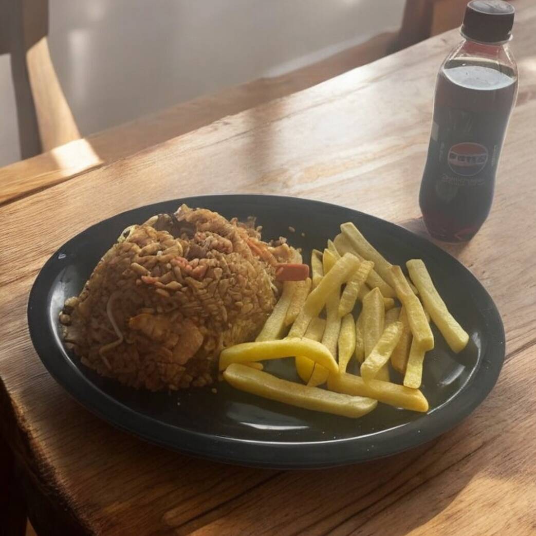 Arroz Chino Personal 400 grs + Papas a la Francesa y arroz ( 400 gramos entre ambos) + Gaseosa 250 ml Postobón ( disponibilidad de la tienda)