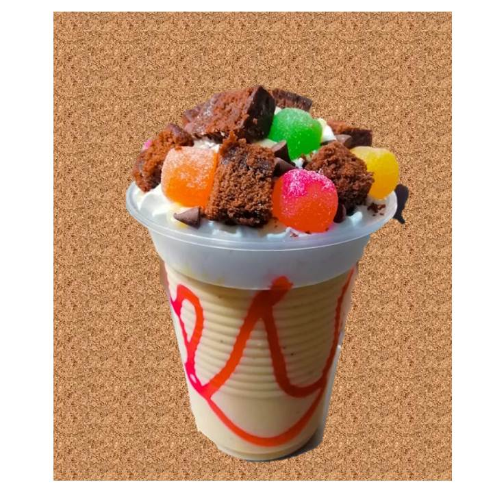Acompañado de helado, chantelly, brawnie, gomitas azucaradas y salsa de su preferencia.