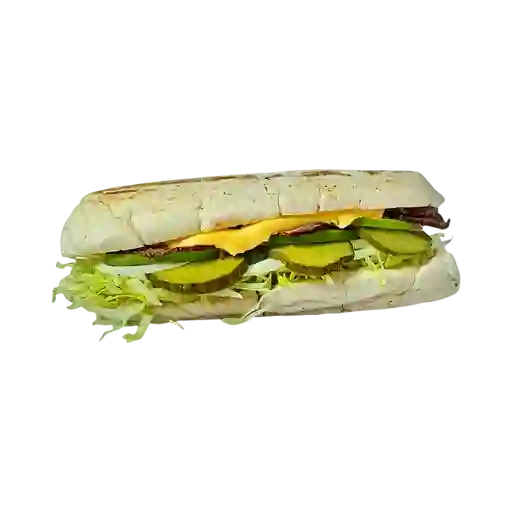 Apetitoso roast beef, jamón, lechuga, tomate, cebolla, pepinillos agridulces, queso cheddar.