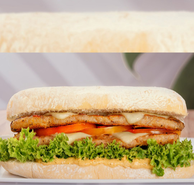Pan ciabatta, 300gr de carne de cerdo sazonada al verdadero estilo italiano, queso provolone, tocineta, tomate, lechuga y salsa tartara de la casa