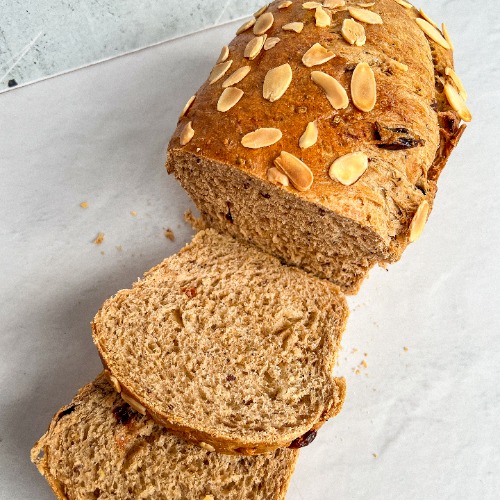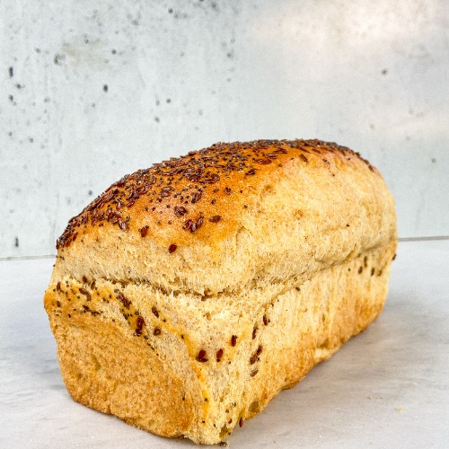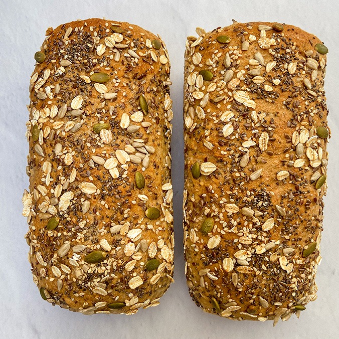 Pan de masa madre integral, enriquecido con una mezcla de cinco semillas que le aportan textura y nutrientes.