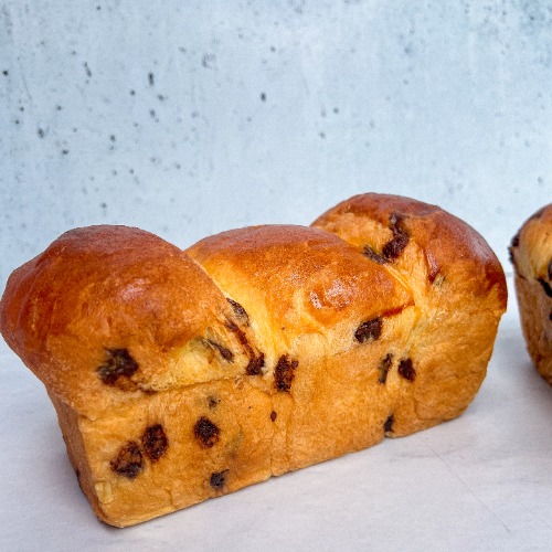Pan de masa madre con una textura suave, relleno de deliciosas chispas de chocolate.