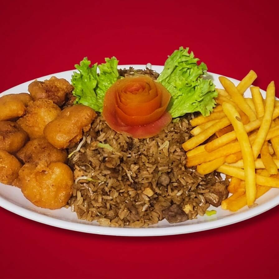 1300gr Arroz, Pollo, Cerdo, Camarones, Carne, Cebollín, Raíces Chinas.