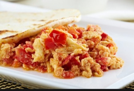 Huevos con cebolla y tomate.