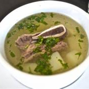 Caldo de costilla con papa, cilantro, cebolla.