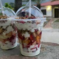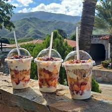 capas entre chantilly yogur griego fresa banano hojuelas crispy papaya manzana chocolate hershys vaso 16 onz