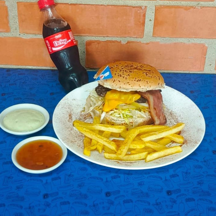 carne queso lechuga tomate cebolla tártara piña papita molida tocineta papa francesa y gaseosa pet 250 Coca-Cola