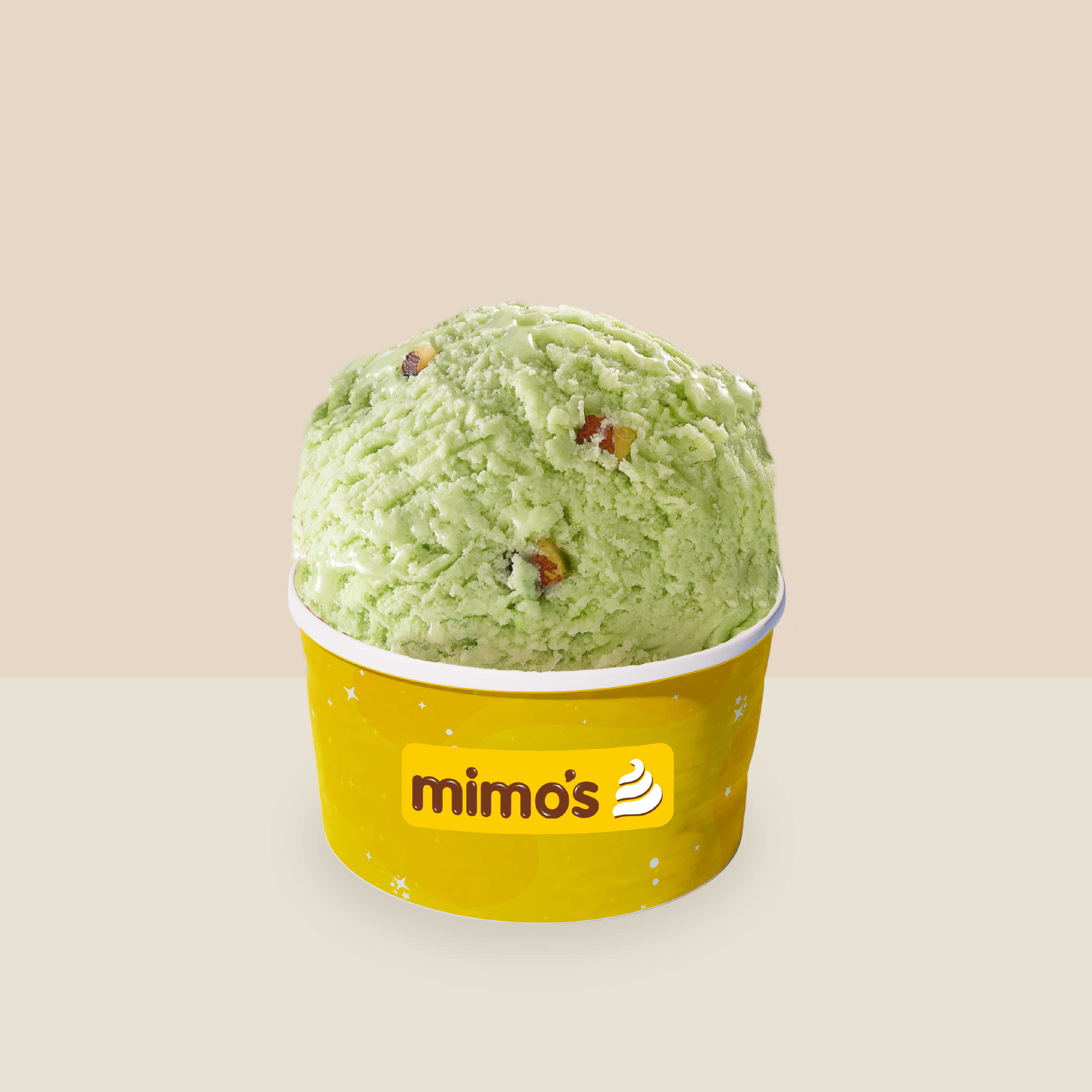 Bola de helado duro sabor a Pistacho al que puedes adicionar deliciosos toppings, imagen de referencia.