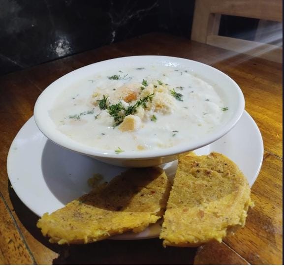 Huevos rancheros con salchicha ranchera maíz arepa y Café.