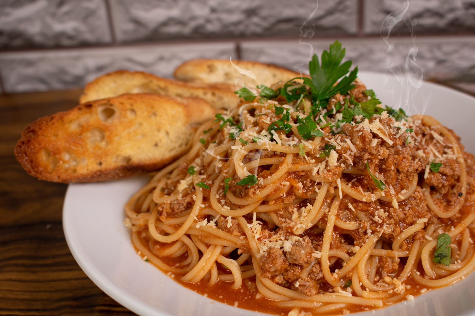 Receta real de la abuela italiana, con los mejores ingredientes y especias, acompañado de un delicioso pan francés.