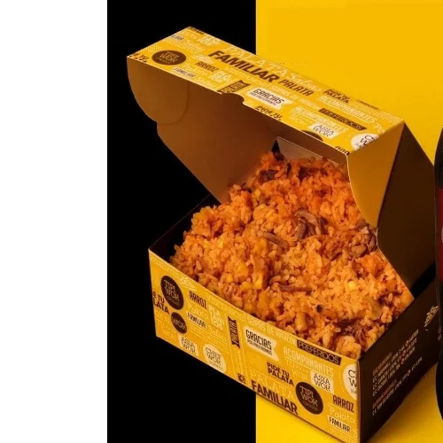 2 arroces de 420 gr a elección, chips de plátano, 2 gaseosas a elección