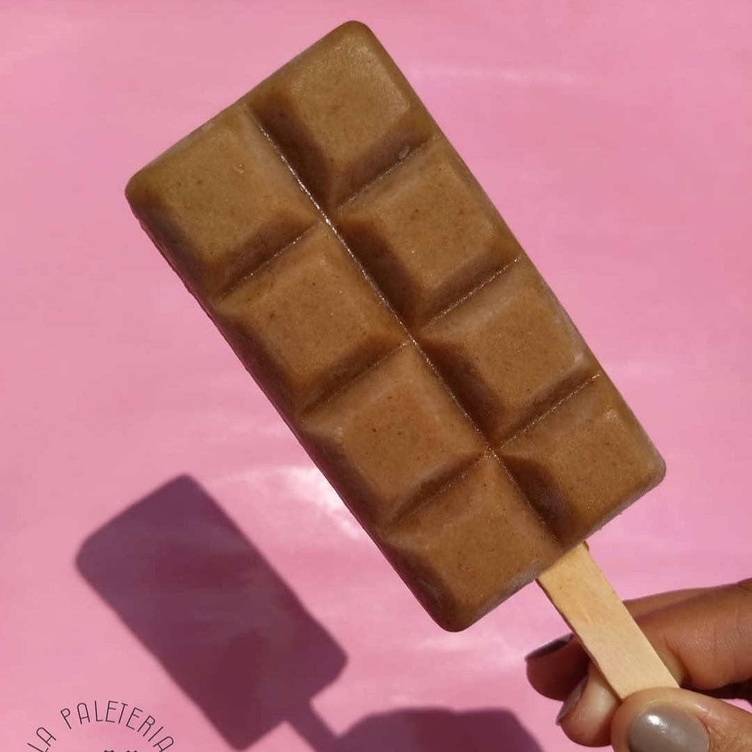 paleta cremosa de vainilla y fresa, con trozos de fresas frescas y chocolate negro.