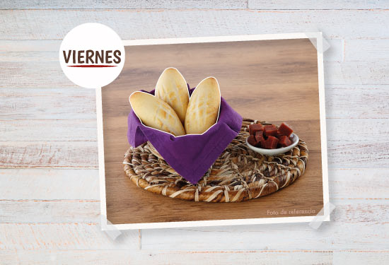 Buñuelo mediano, Pan de Yuca Herradura, Almojabana Grande y Rosca de Maíz.
