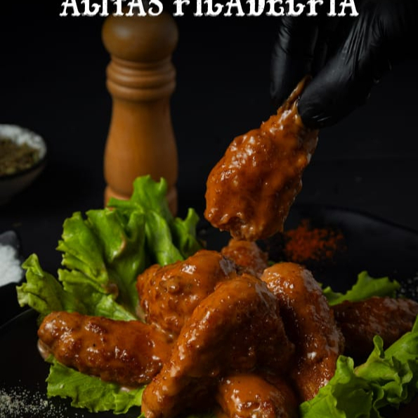10 pzas De alas crujientes apanadas en panko japonés, bañadas en salsa de la casa y acompañadas de papas a la francesa.