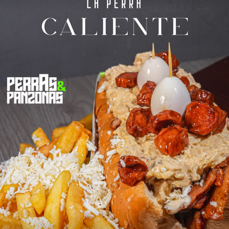 Tocineta, salchicha picada, cebolla grillé, queso costeño y fundido, carne bolognesa picante, guacamole, pico de gallo, tostacos triturados, tártara, huevo de codorniz endiablado y plus de papas francesas.