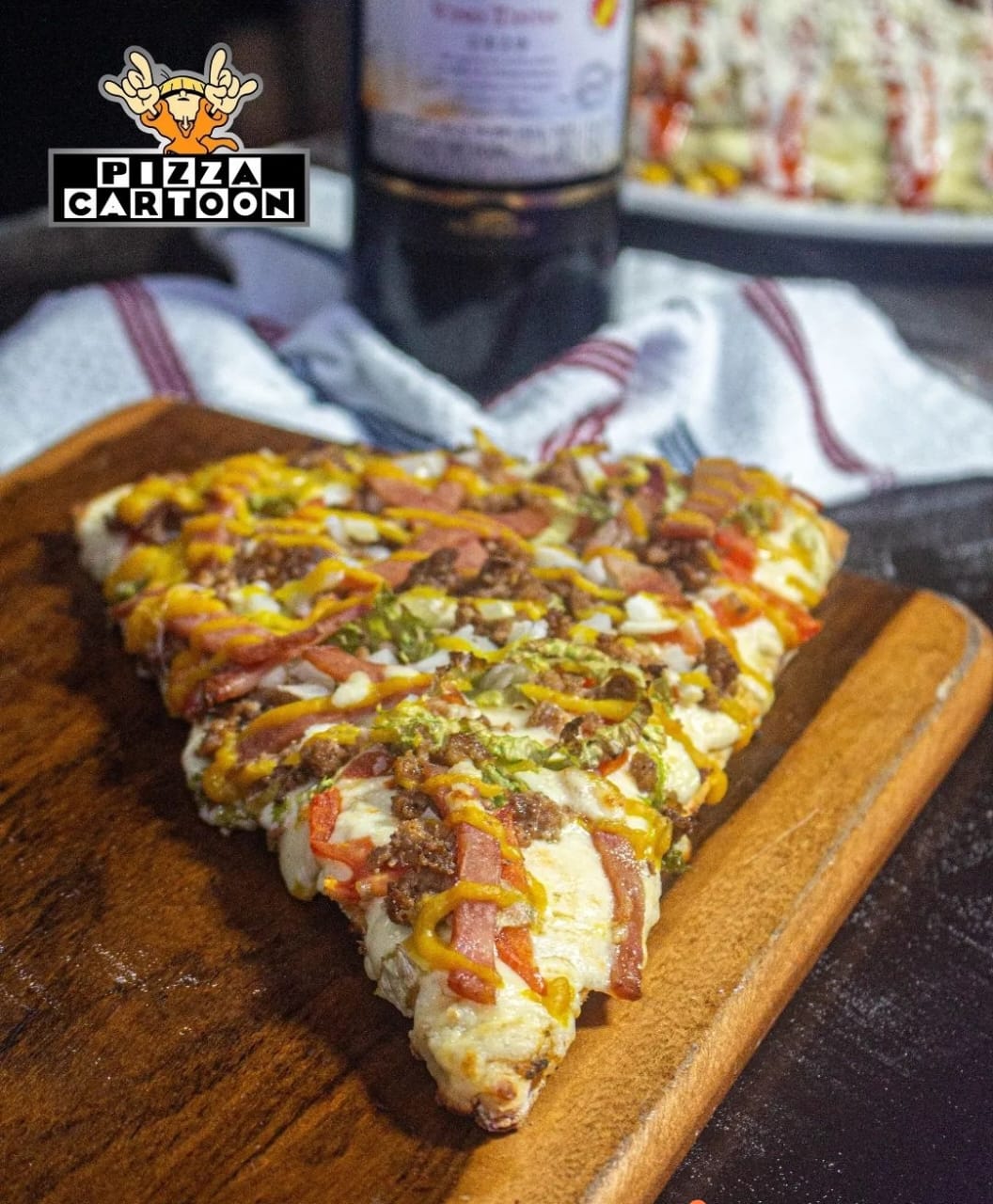 Carne desmechada, jamón, maíz, chorizo, queso mozzarella y salsa BBQ.