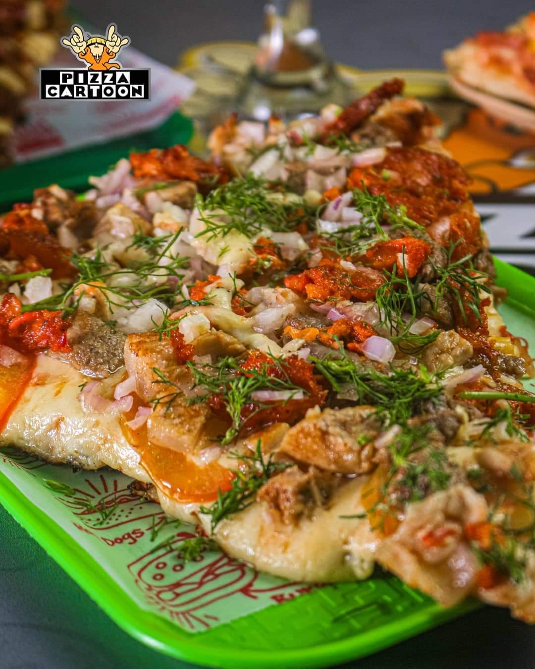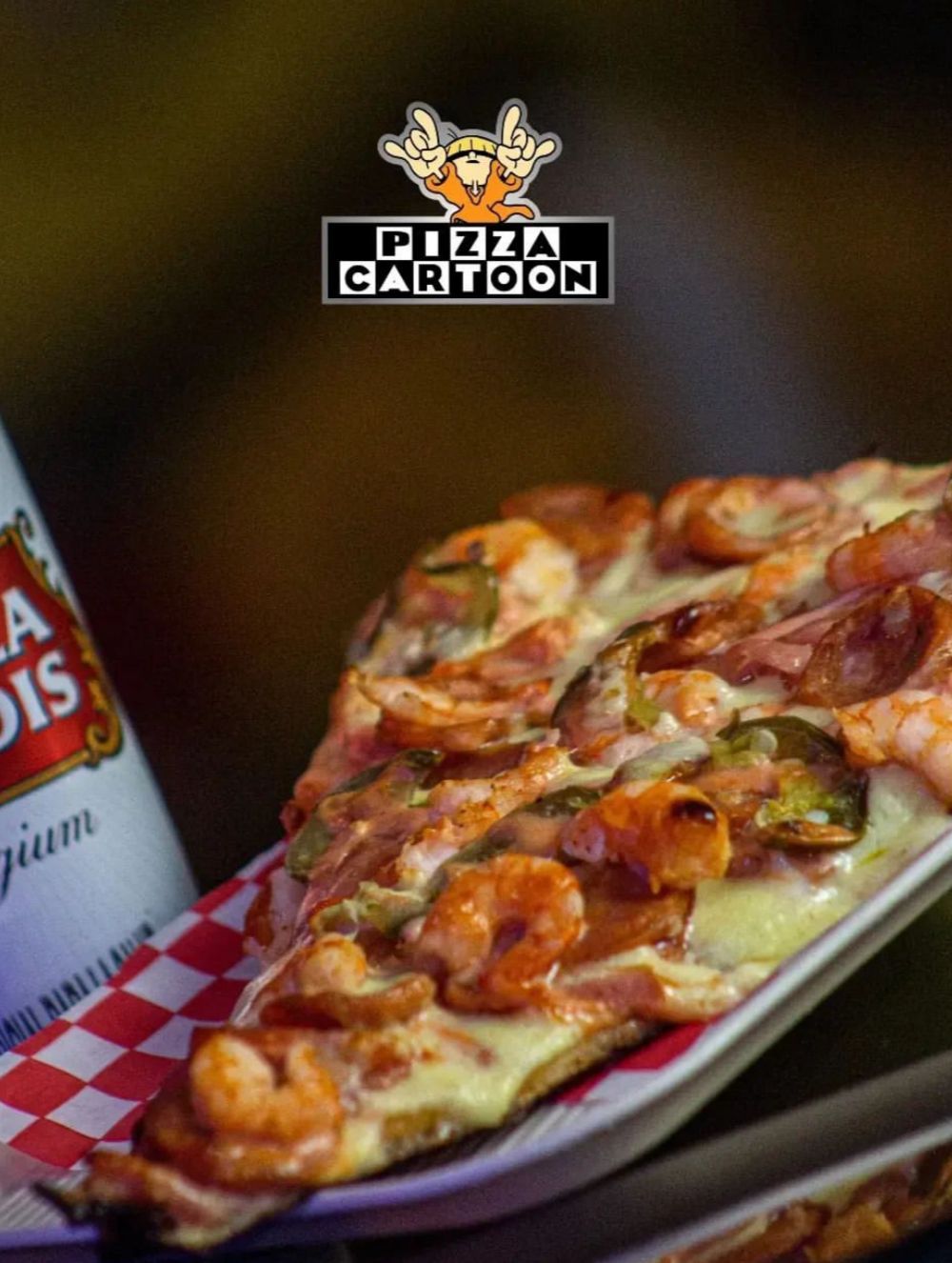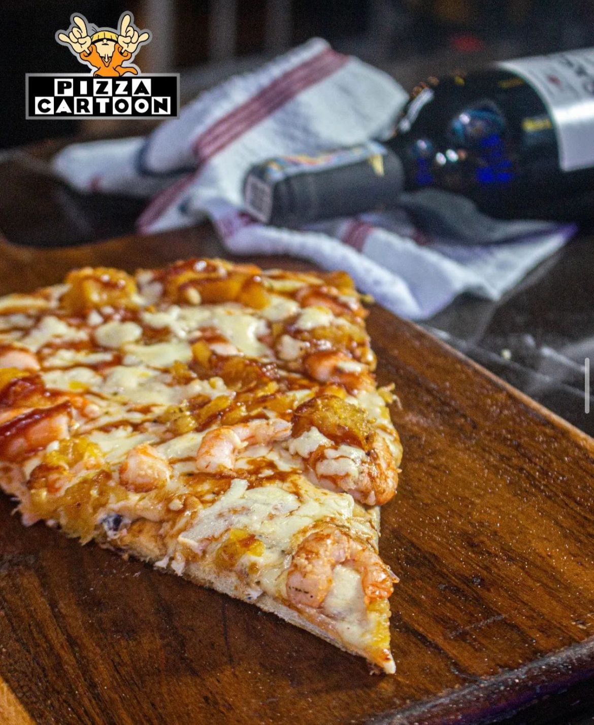 Salami, cabáno, pollo, champiñón, camarón y queso mozzarella.