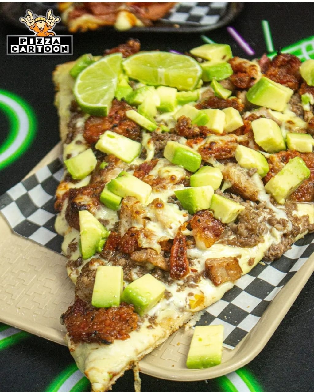 Carne molida, cerdo salteado, chorizo de cerdo, aguacate, limón y queso mozzarella.