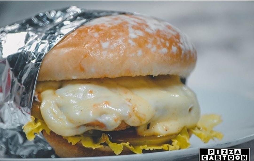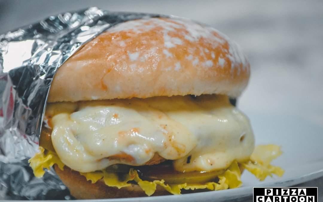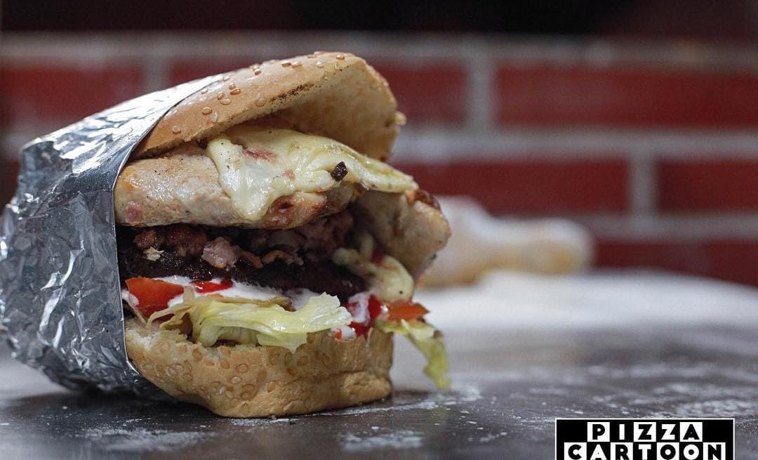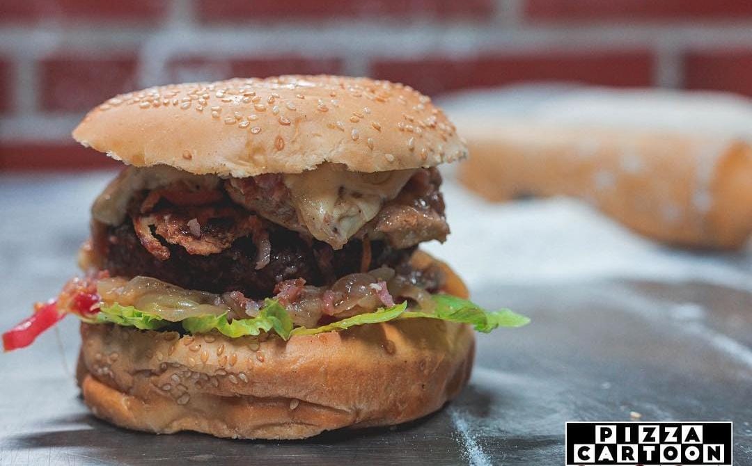 Doble carne, tocineta, cebolla grille, tomate y queso mozzarella.