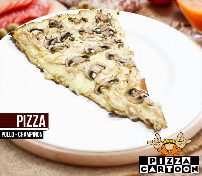 Salami, cabáno, pollo, champiñón y queso mozzarella.
